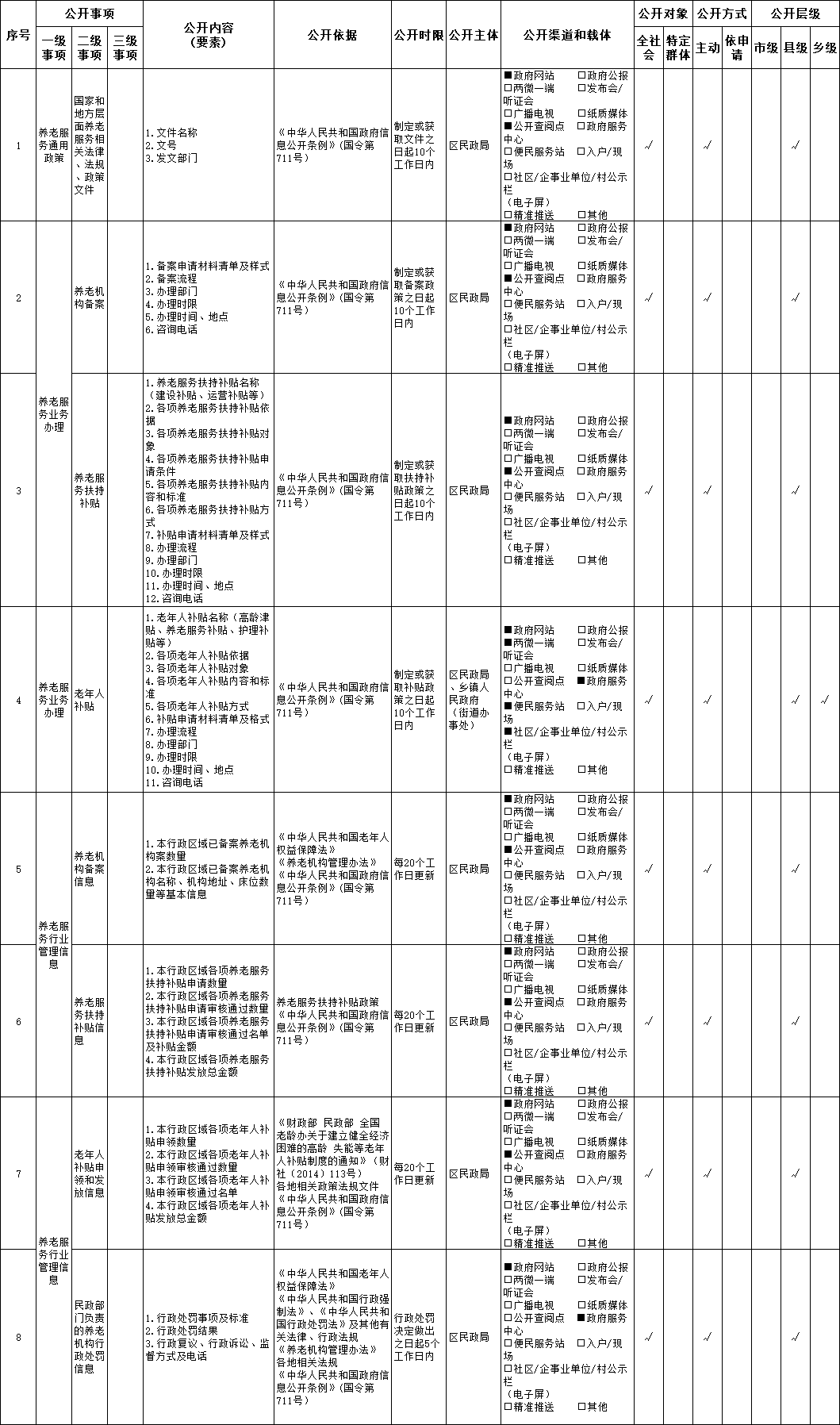 溫州市甌海區(qū)養(yǎng)老服務(wù)領(lǐng)域政務(wù)公開事項標準目錄