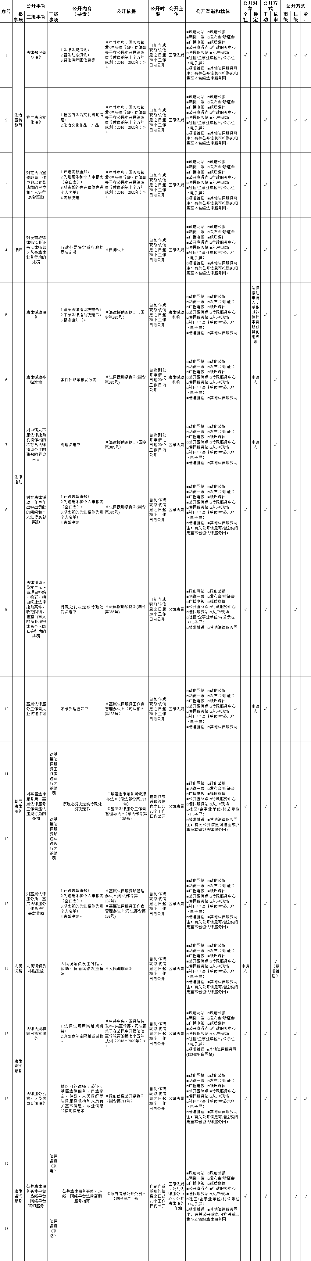 溫州市甌海區公共法律服務領域政務公開事項標準目錄